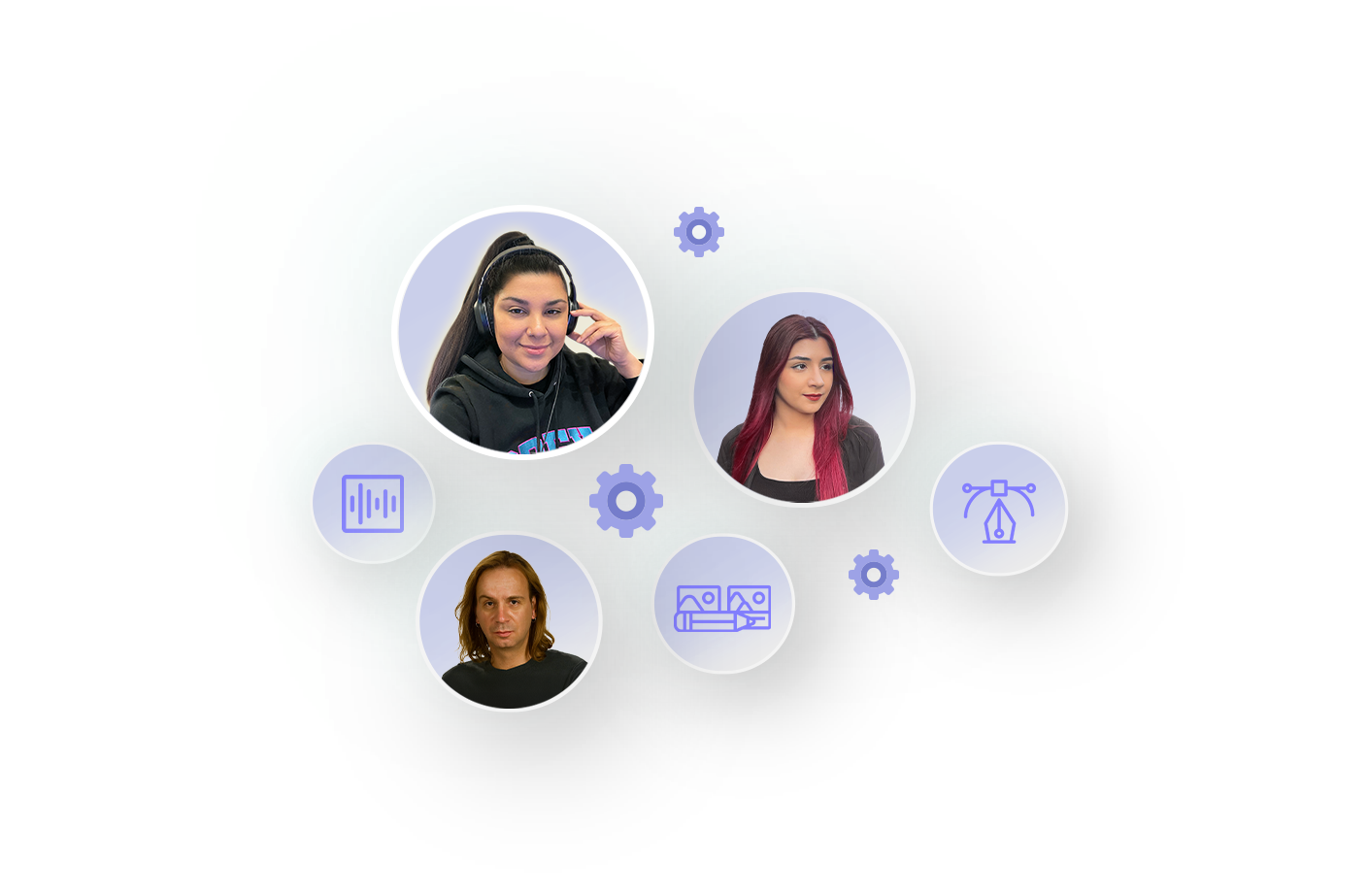 • Very little. While collaboration and trust are important, we handle the full production process: scripting (based on your input), design, animation, sound design, and extra formats/languages.